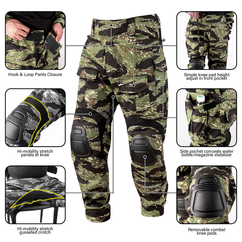 Découvrez l'uniforme de camouflage tactique KRYDEX Gen3 pour homme, conçu pour allier discrétion et style grâce à son motif rayé tigre en vert ranger. Que ce soit pour des missions tactiques ou des loisirs en plein air, cette tenue allie robustesse et confort, vous préparant à relever tous vos défis dans la nature.